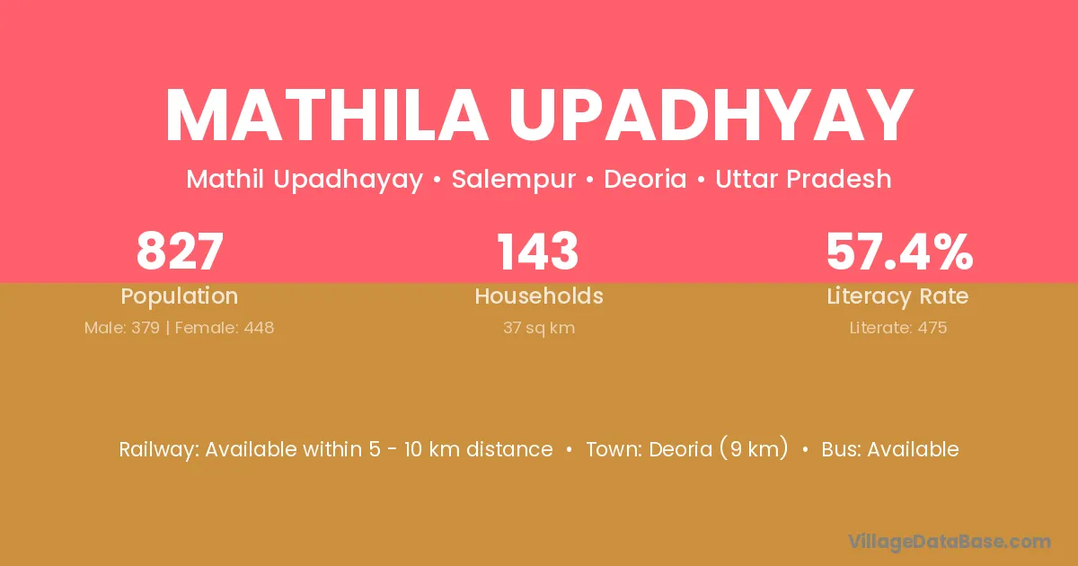 Deoria (9 km) is the nearest town to Mathila Upadhyay village for major economic activities and is located approximately 9 km away.