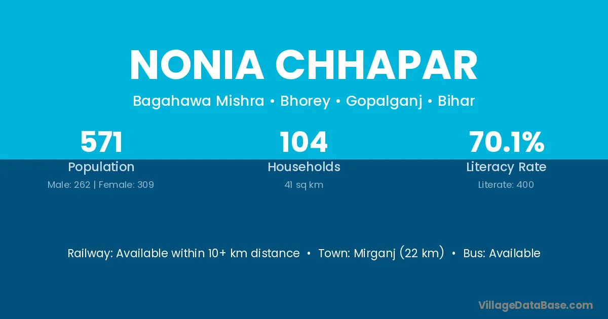 Nonia Chhapar village has a total population of 485 people, of which 239 are males and 246 are females.
