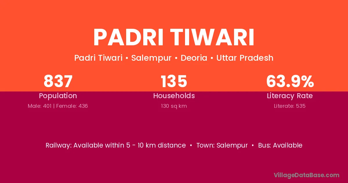 Padri Tiwari village has a total population of 837 people, of which 401 are males and 436 are females.
