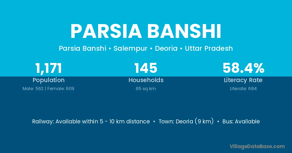 Deoria (9 km) is the nearest town to Parsia Banshi village for major economic activities and is located approximately 9 km away.