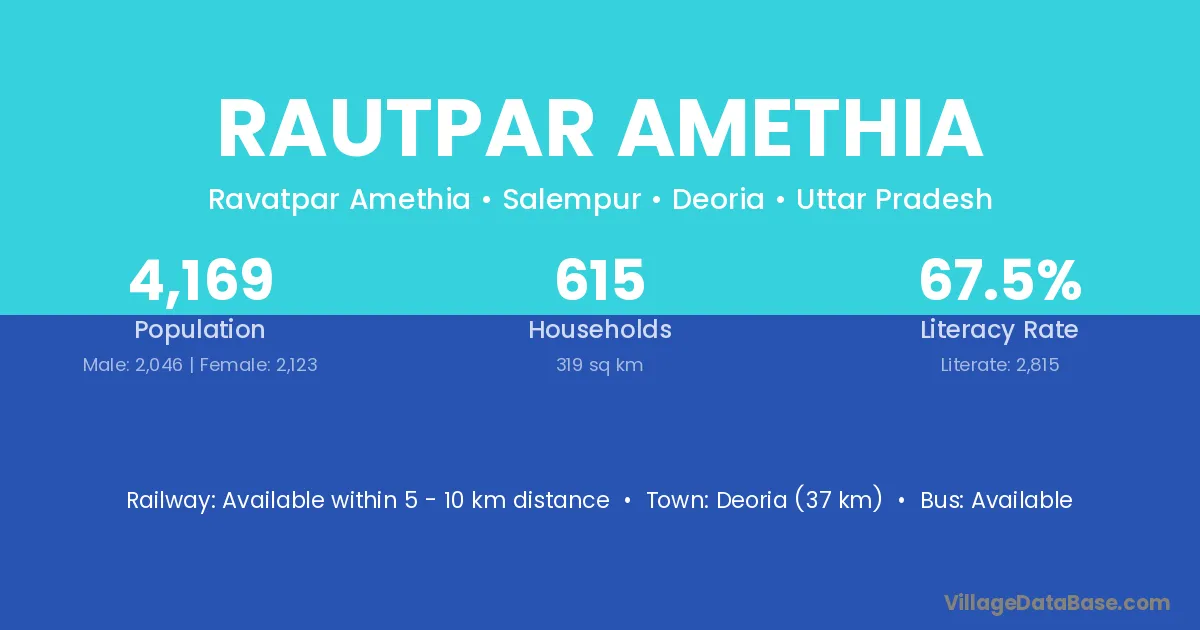 Deoria (37 km) is the nearest town to Rautpar Amethia village for major economic activities and is located approximately 37 km away.