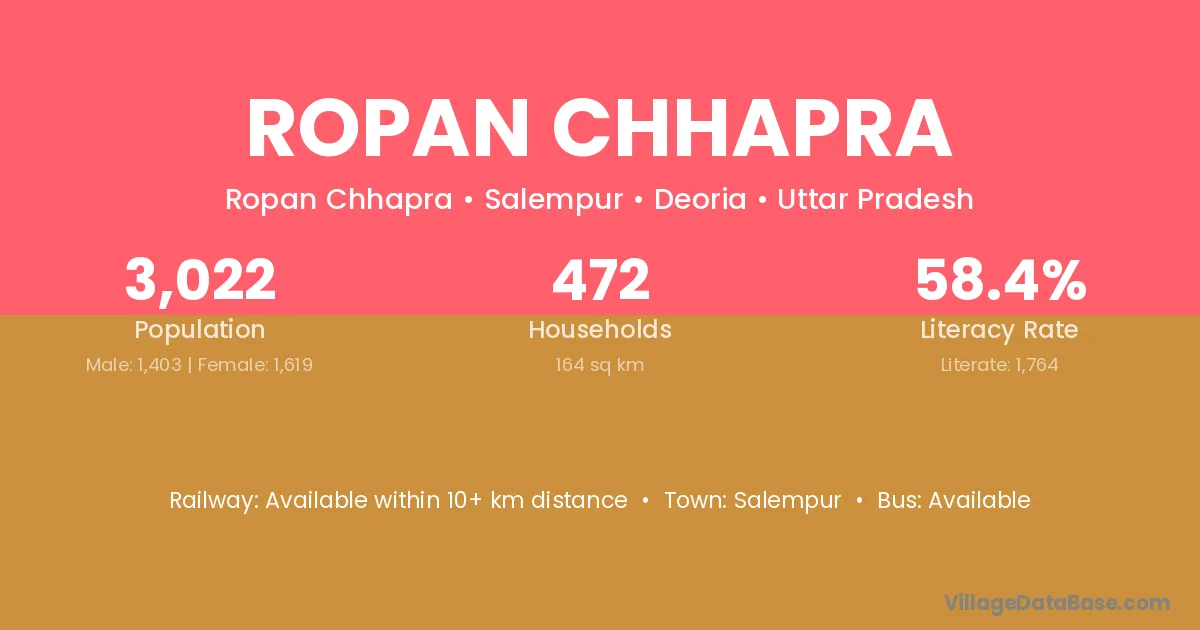 Ropan Chhapra village has a total population of 3,022 people, of which 1,403 are males and 1,619 are females.