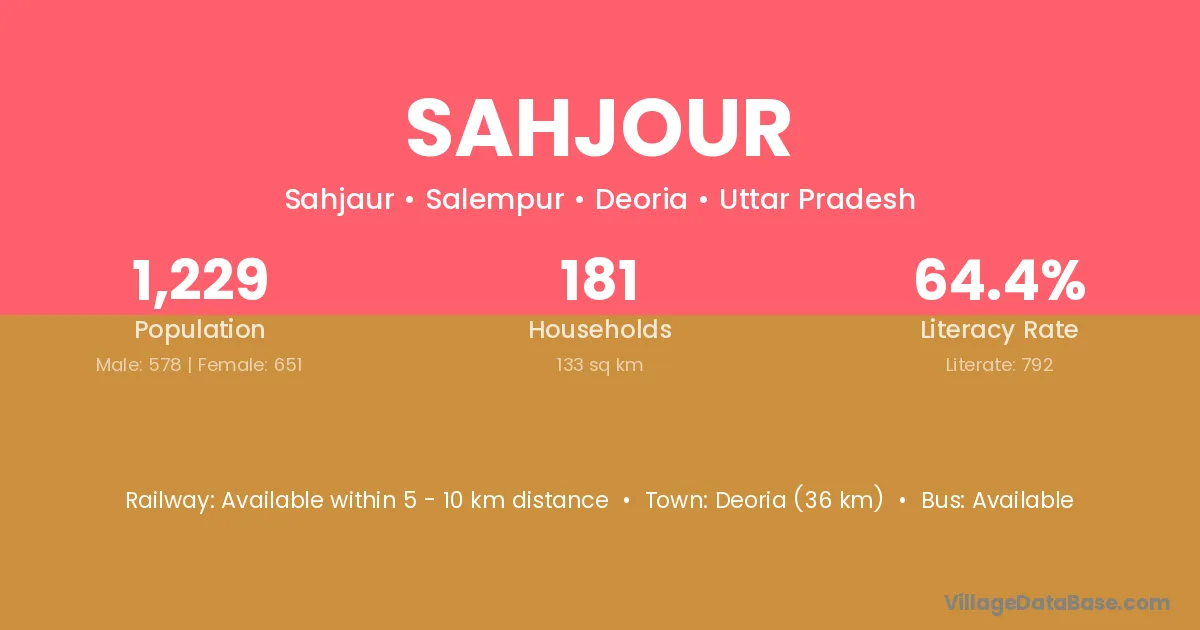 Deoria (36 km) is the nearest town to Sahjour village for major economic activities and is located approximately 36 km away.