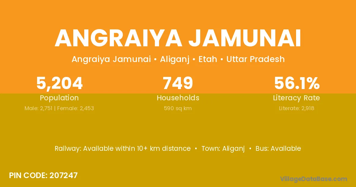 According to Census 2011 information, the village code of Angraiya Jamunai village is 207247.
