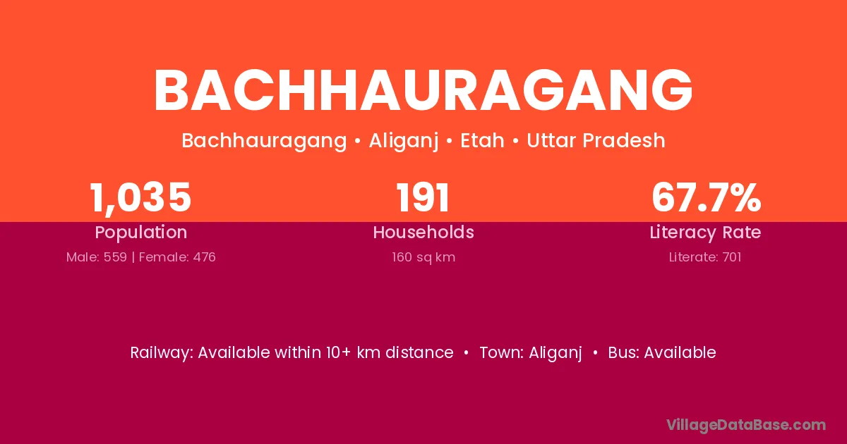 Aliganj is the nearest town to Bachhauragang village for major economic activities