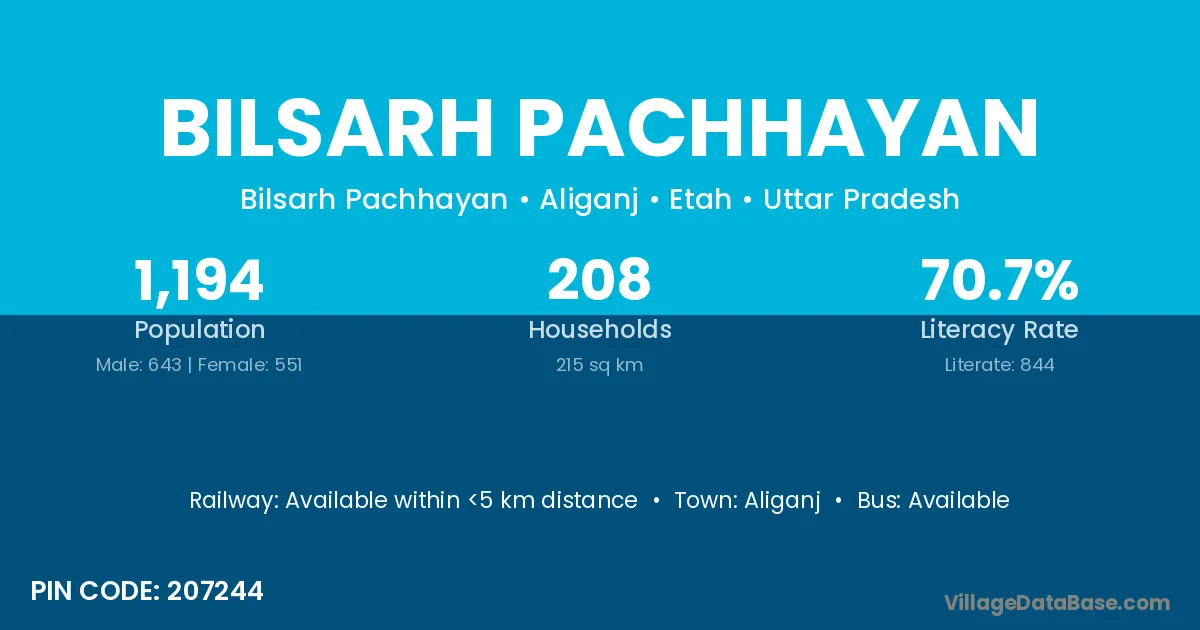 Aliganj is the nearest town to Bilsarh Pachhayan village for major economic activities