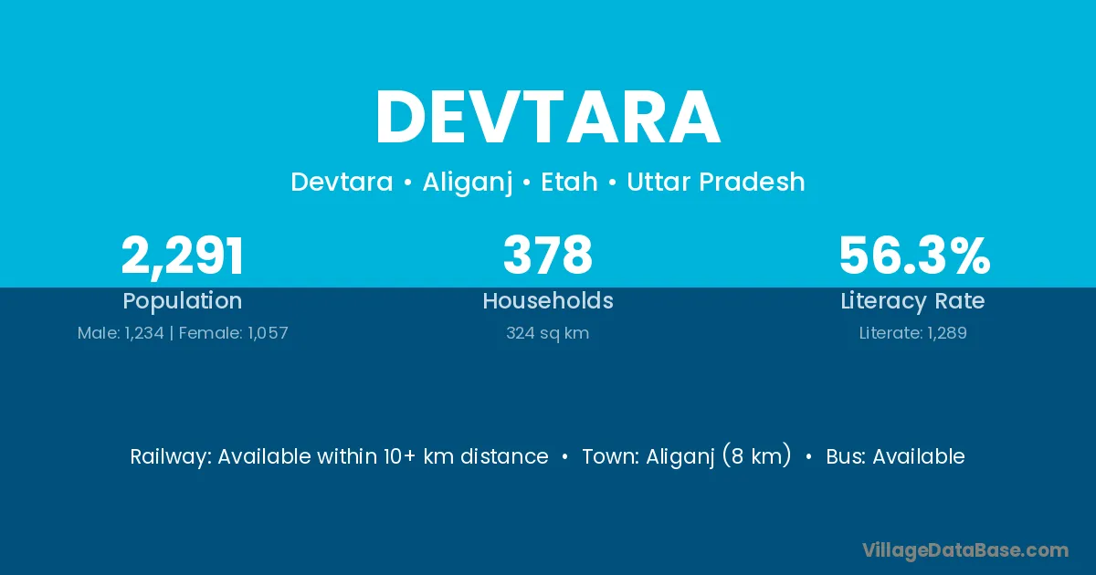 Aliganj (8 km) is the nearest town to Devtara village for major economic activities and is located approximately 8 km away.