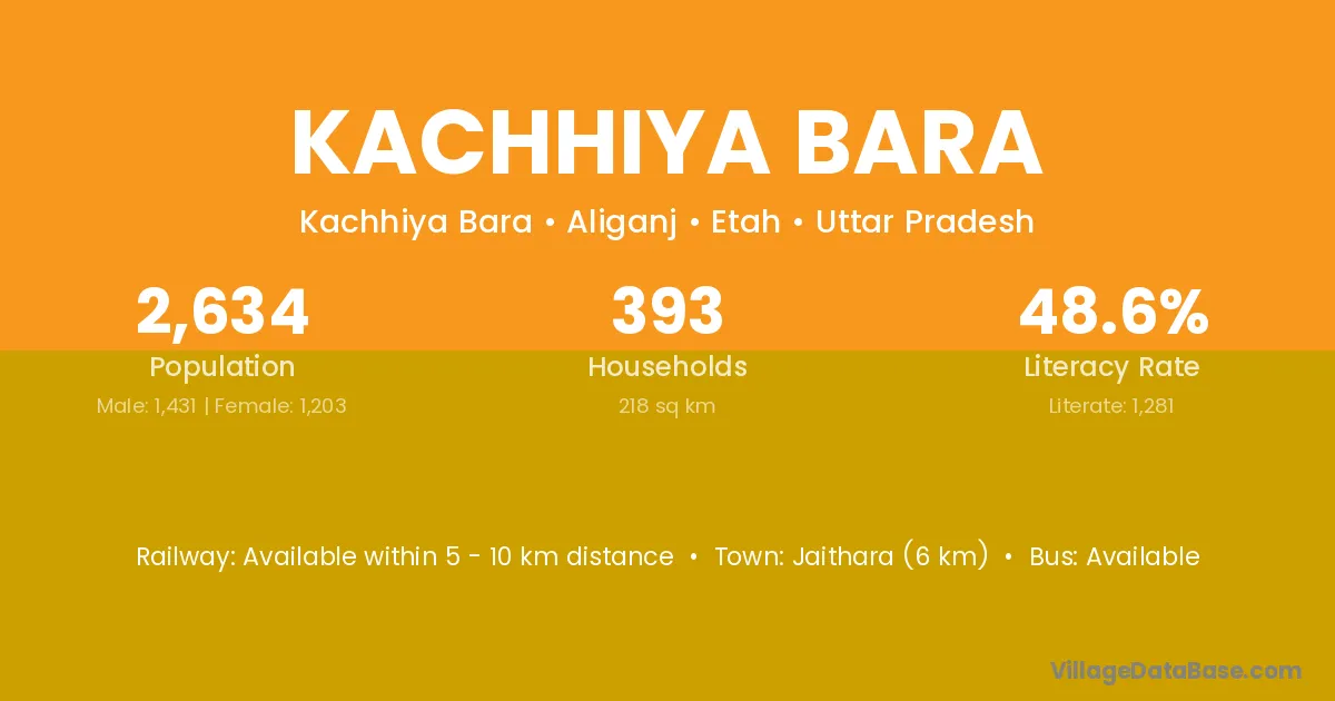 Jaithara (6 km) is the nearest town to Kachhiya Bara village for major economic activities and is located approximately 6 km away.