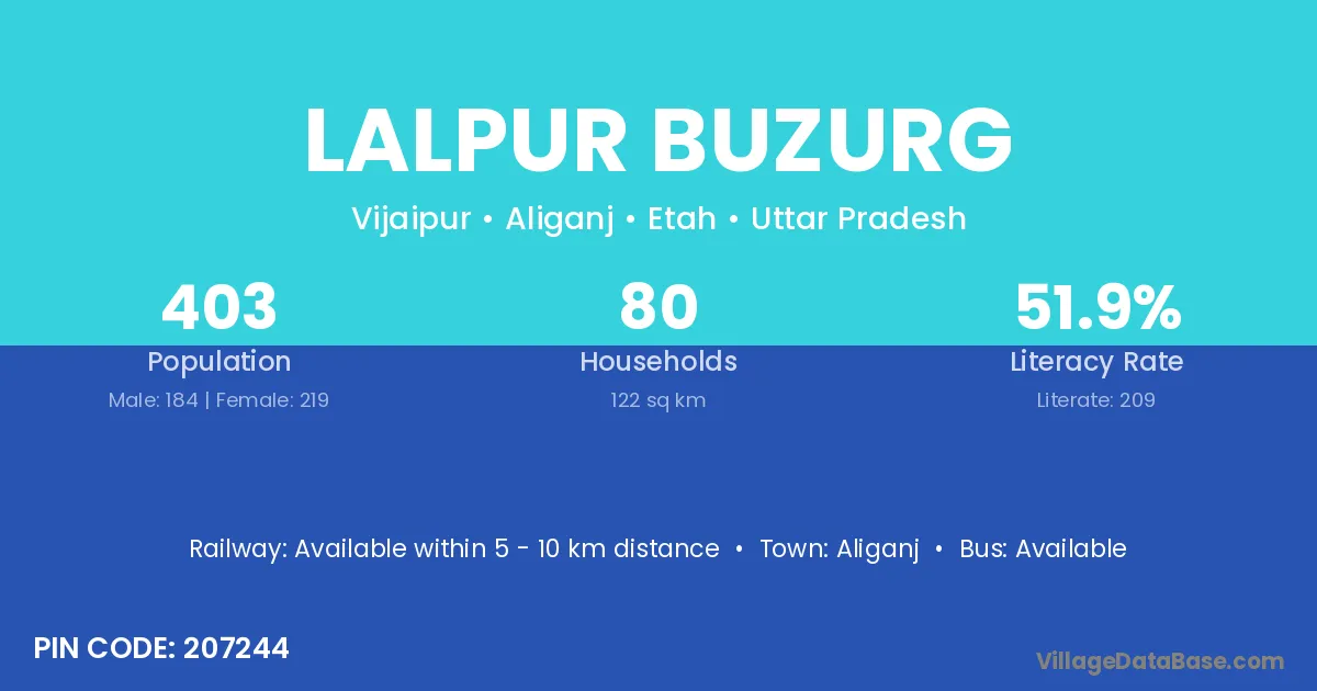 Aliganj is the nearest town to Lalpur Buzurg village for major economic activities