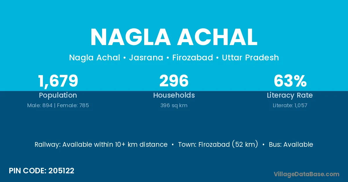 Aliganj (1 km) is the nearest town to Nagla Achal village for major economic activities and is located approximately 1 km away.