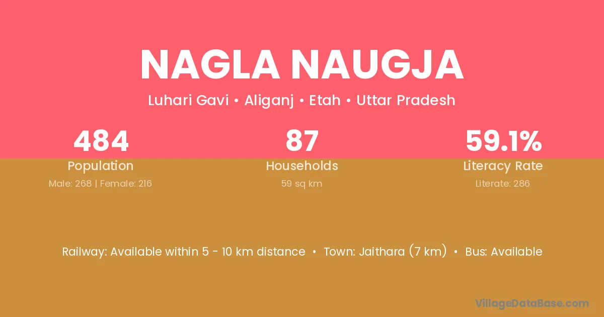 Jaithara (7 km) is the nearest town to Nagla Naugja village for major economic activities and is located approximately 7 km away.