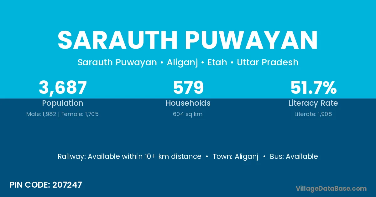 Aliganj is the nearest town to Sarauth Puwayan village for major economic activities
