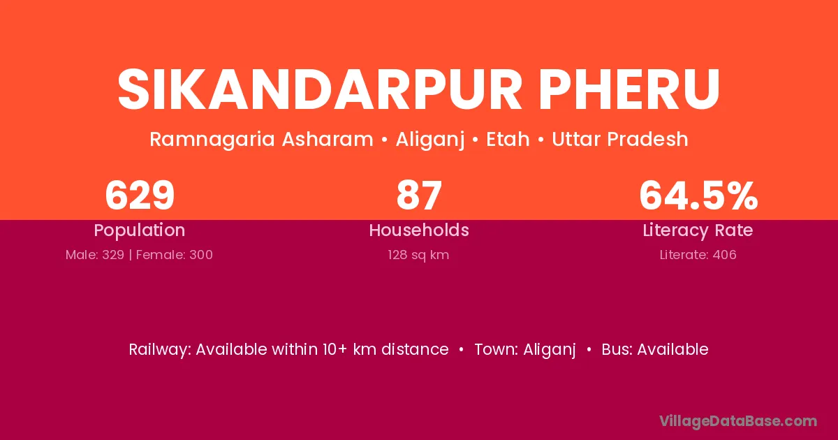 Sikandarpur Pheru village has a total population of 629 people, of which 329 are males and 300 are females.