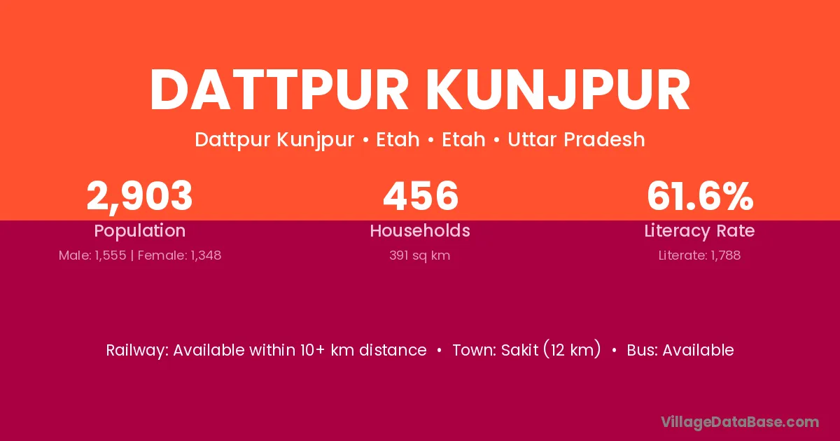 Dattpur Kunjpur village has a total population of 2,903 people, of which 1,555 are males and 1,348 are females.