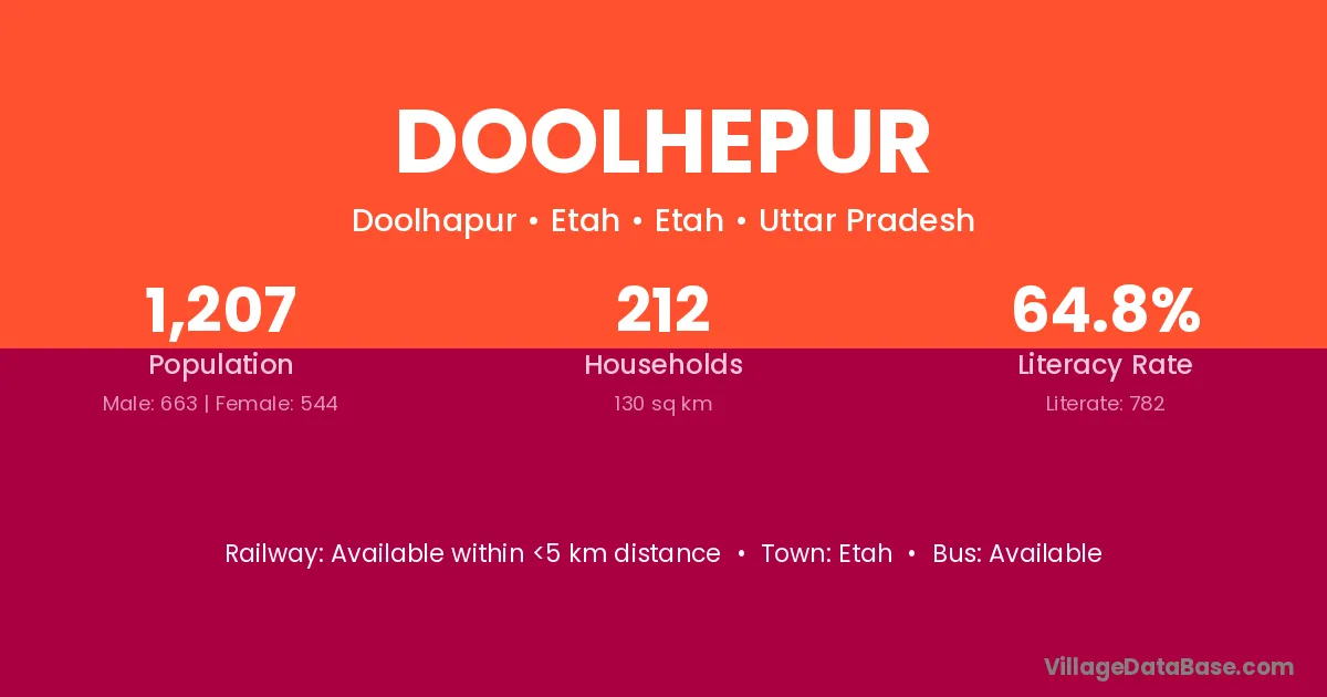 Etah is the nearest town to Doolhepur village for major economic activities