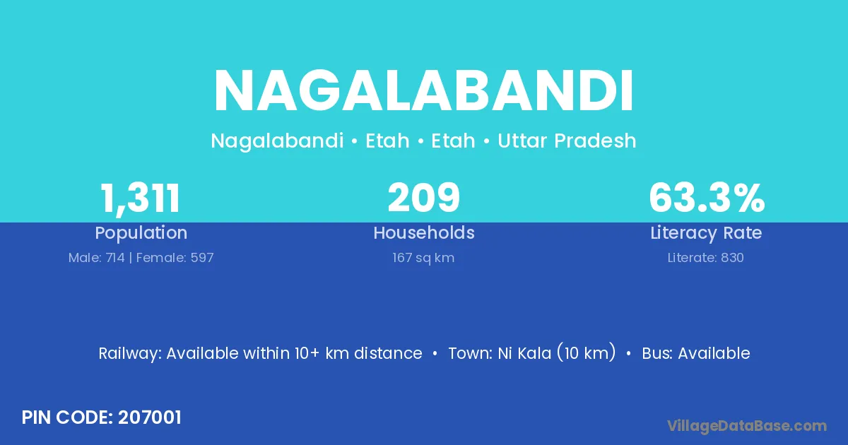 Ni Kala (10 km) is the nearest town to Nagalabandi village for major economic activities and is located approximately 10 km away.