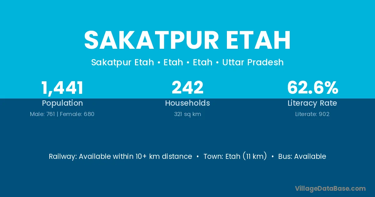 Sakatpur Etah village has a total population of 1,441 people, of which 761 are males and 680 are females.