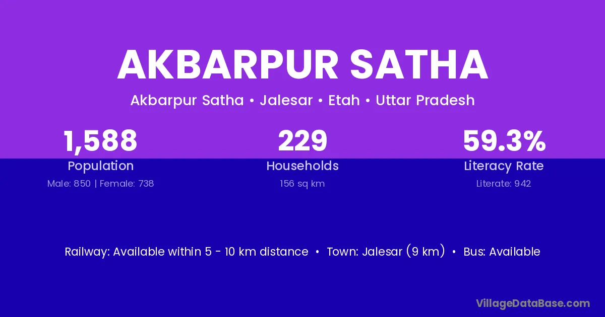 Jalesar (9 km) is the nearest town to Akbarpur Satha village for major economic activities and is located approximately 9 km away.