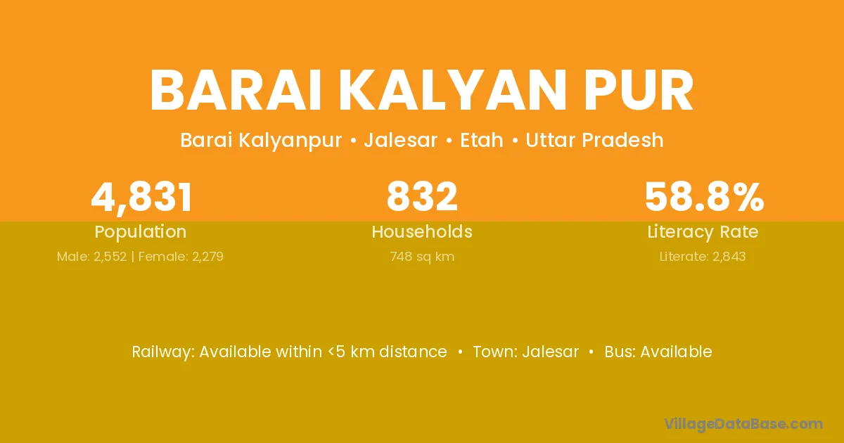 Jalesar is the nearest town to Barai Kalyan Pur village for major economic activities