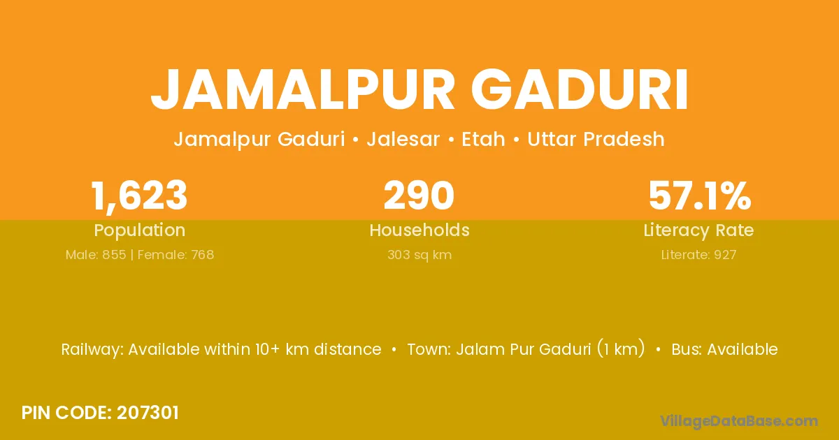 Jalam Pur Gaduri (1 km) is the nearest town to Jamalpur Gaduri village for major economic activities and is located approximately 1 km away.