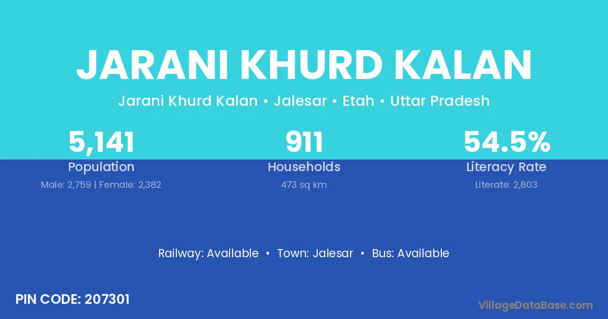 Jalesar is the nearest town to Jarani Khurd Kalan village for major economic activities