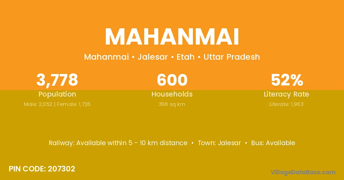 Jalesar is the nearest town to Mahanmai village for major economic activities