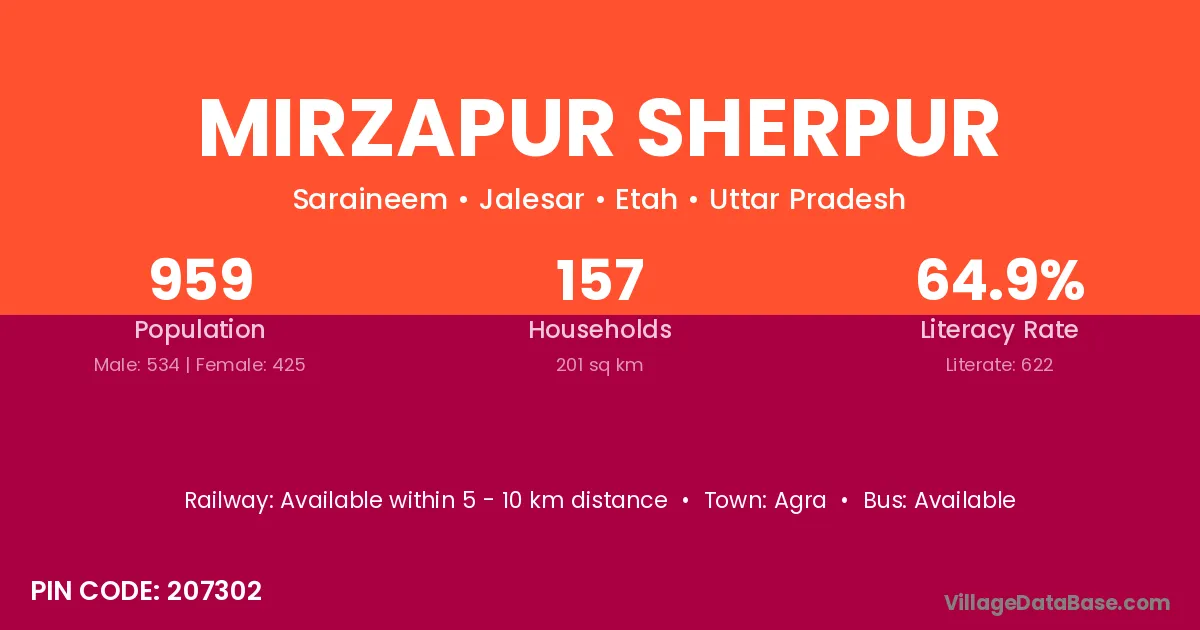 Mirzapur Sherpur village has a total population of 959 people, of which 534 are males and 425 are females.