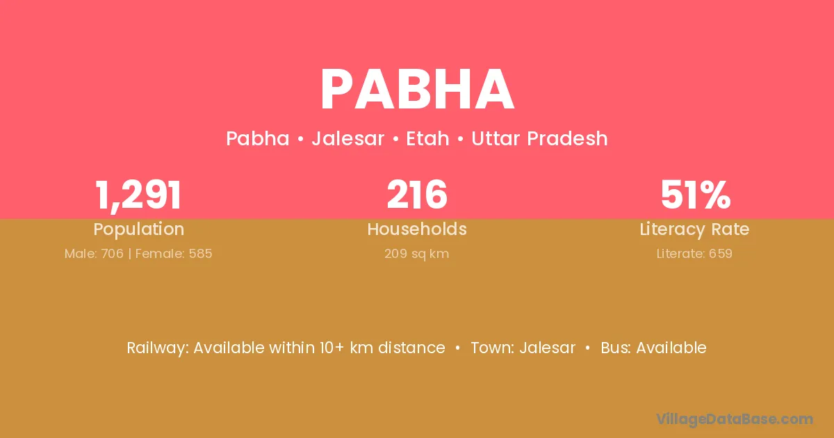 Jalesar is the nearest town to Pabha village for major economic activities
