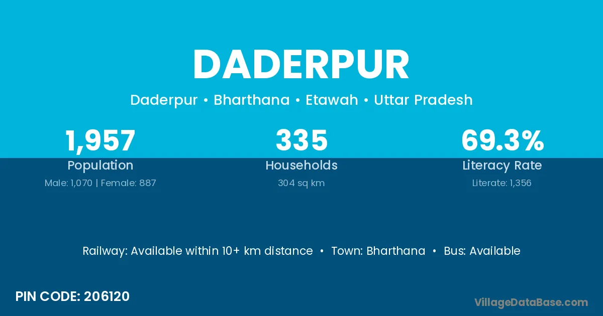 Bharthana is the nearest town to Daderpur village for major economic activities