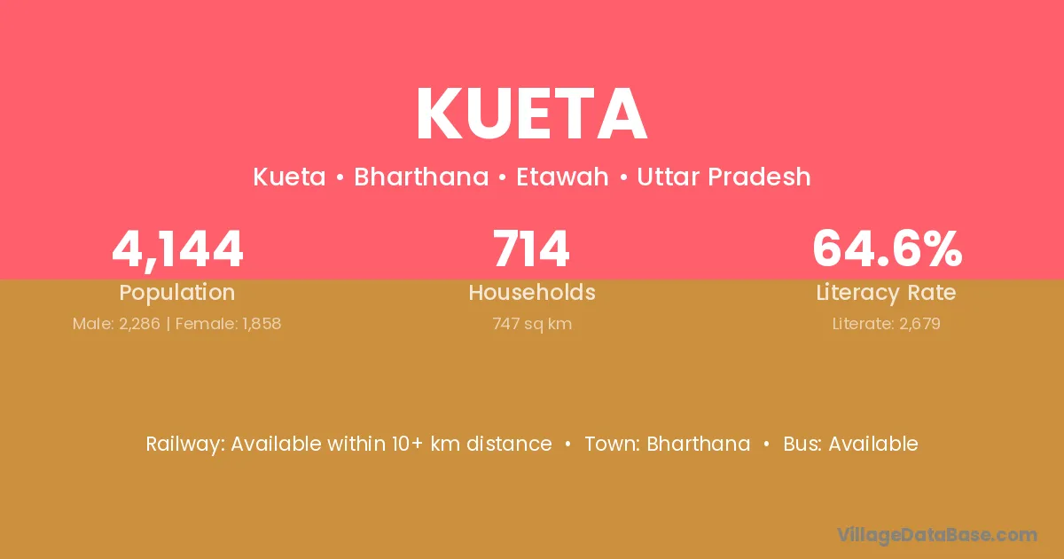 Bharthana is the nearest town to Kueta village for major economic activities