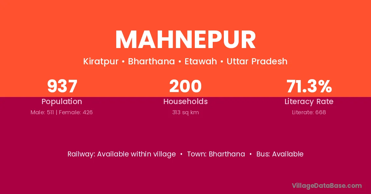 Bharthana is the nearest town to Mahnepur village for major economic activities