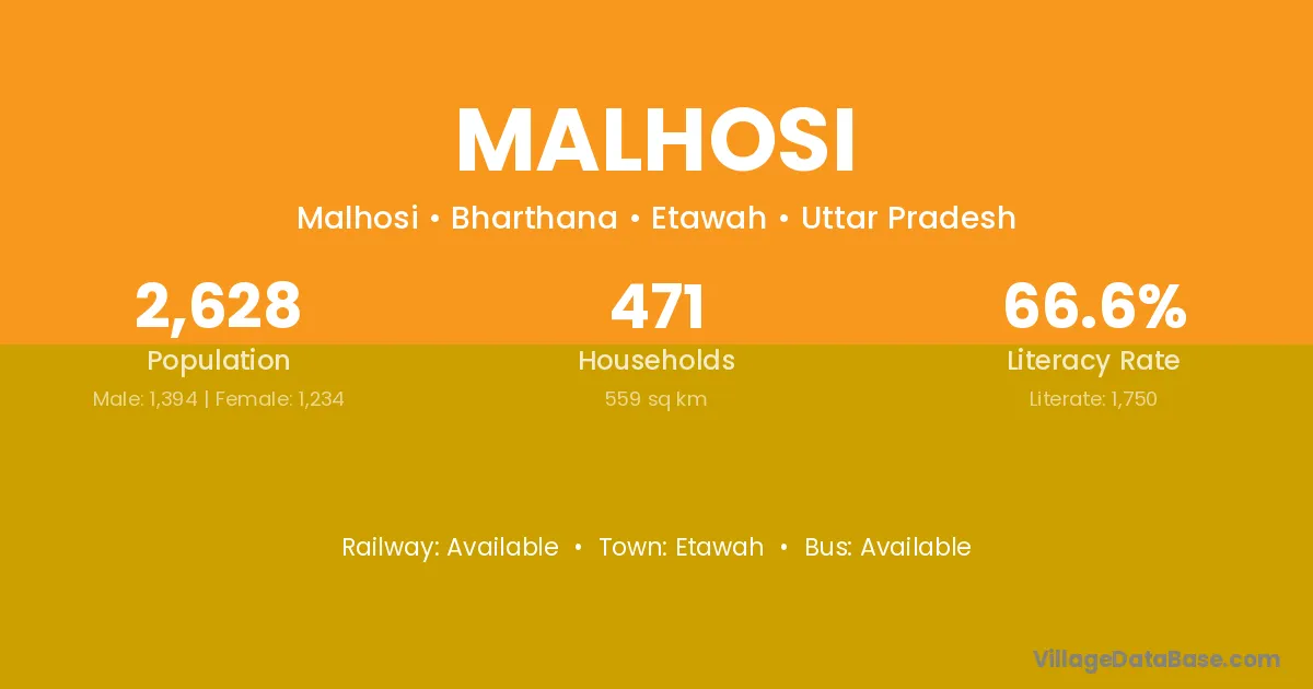Etawah is the nearest town to Malhosi village for major economic activities