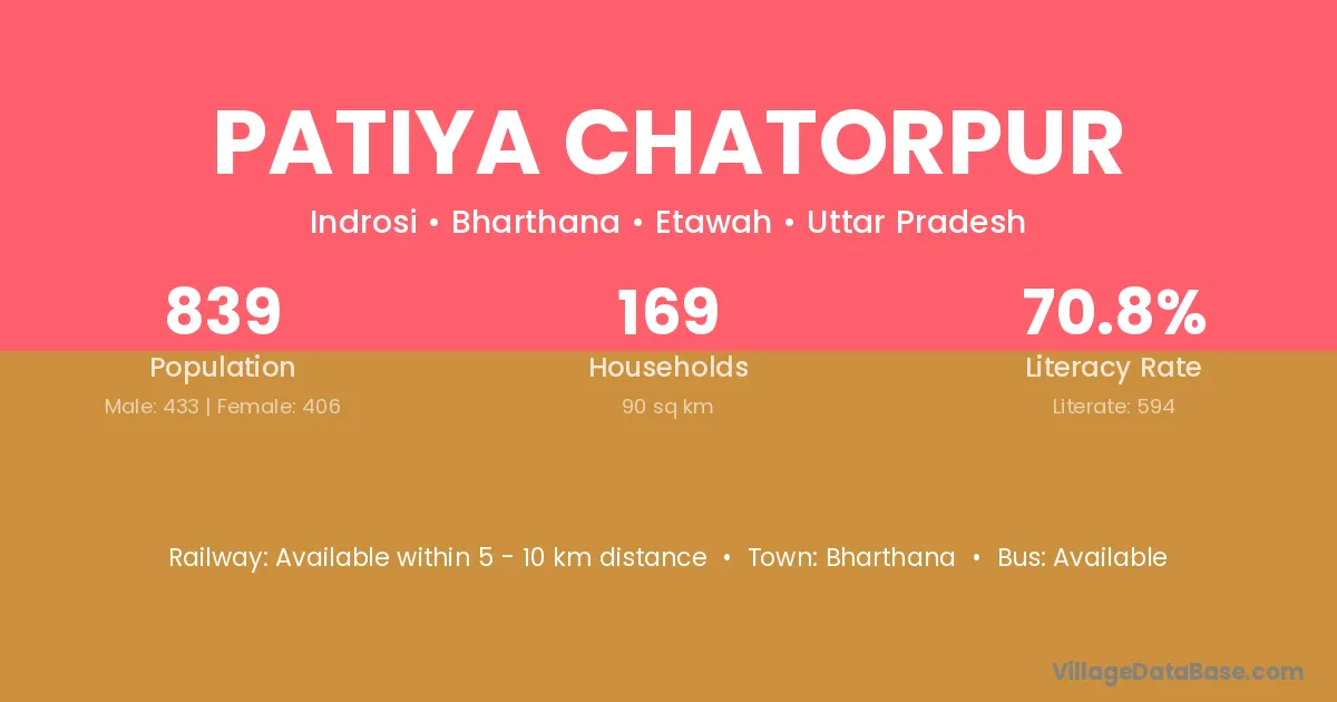 Bharthana is the nearest town to Patiya Chatorpur village for major economic activities