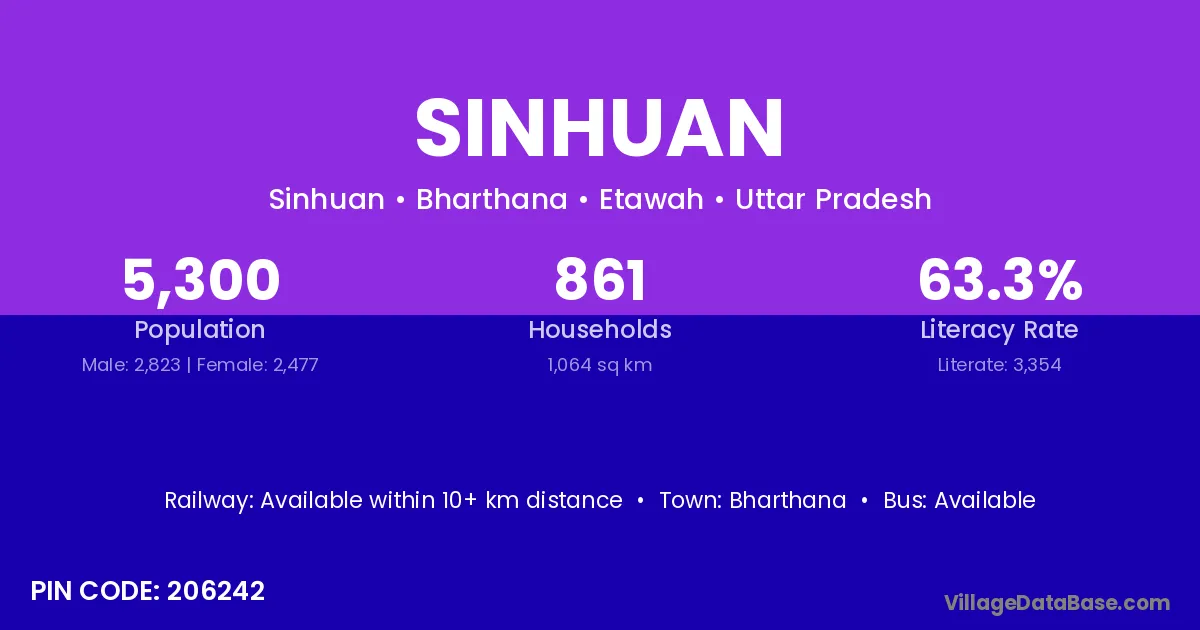 Bharthana is the nearest town to Sinhuan village for major economic activities