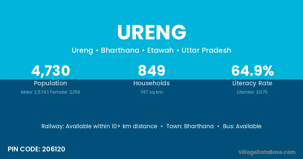 Ureng village is located in the Bharthana Tehsil of the Etawah district in Uttar Pradesh .