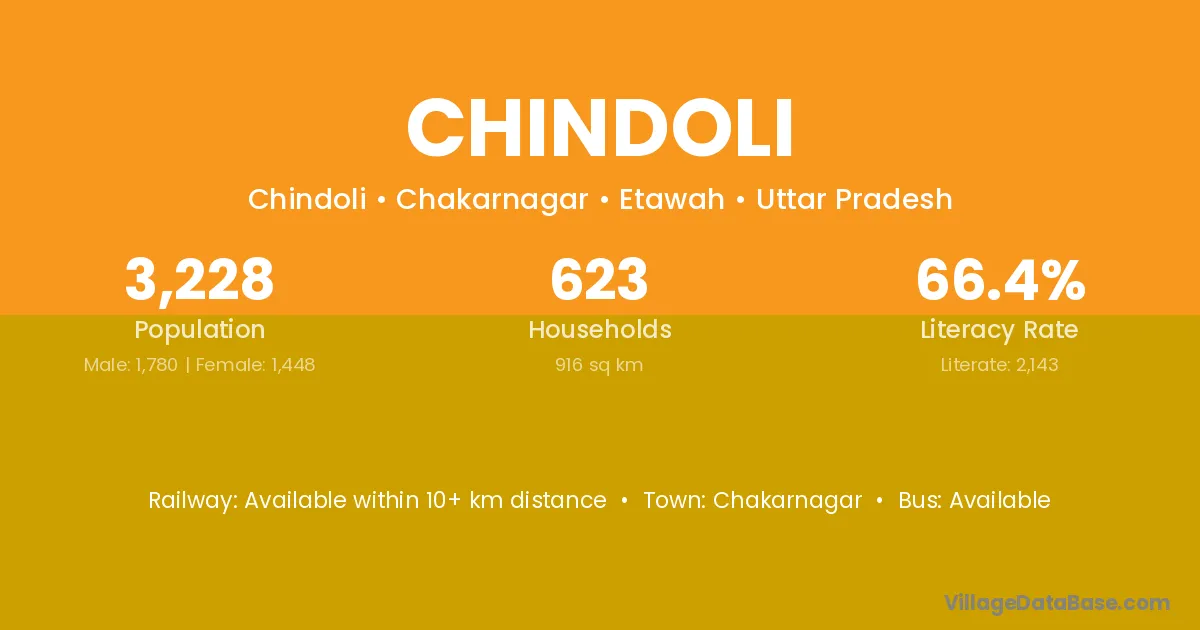 Chindoli village has a total population of 3,228 people, of which 1,780 are males and 1,448 are females.