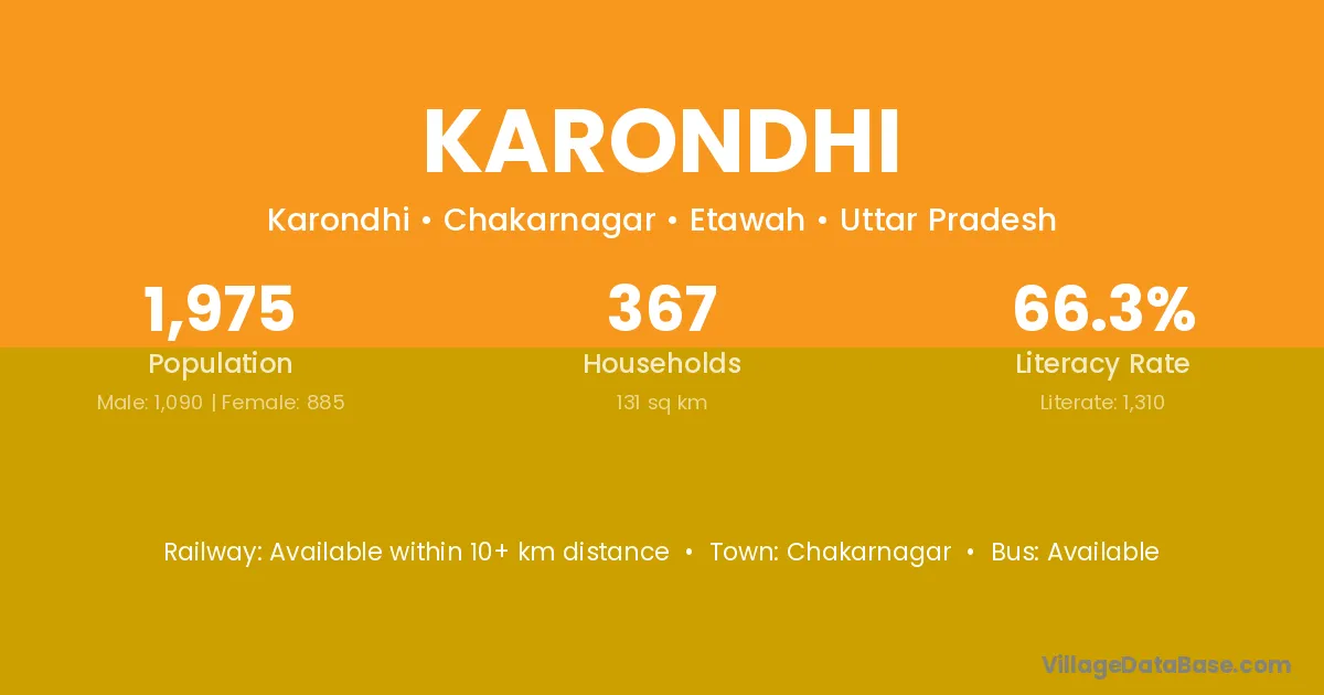 Karondhi village is located in the Chakarnagar Tehsil of the Etawah district in Uttar Pradesh .