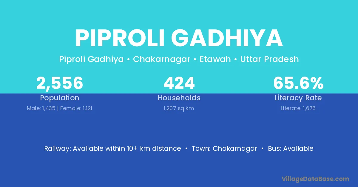 Chakarnagar is the nearest town to Piproli Gadhiya village for major economic activities