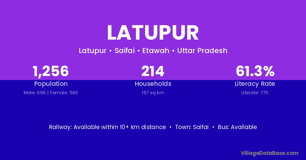 Saifai is the nearest town to Latupur village for major economic activities