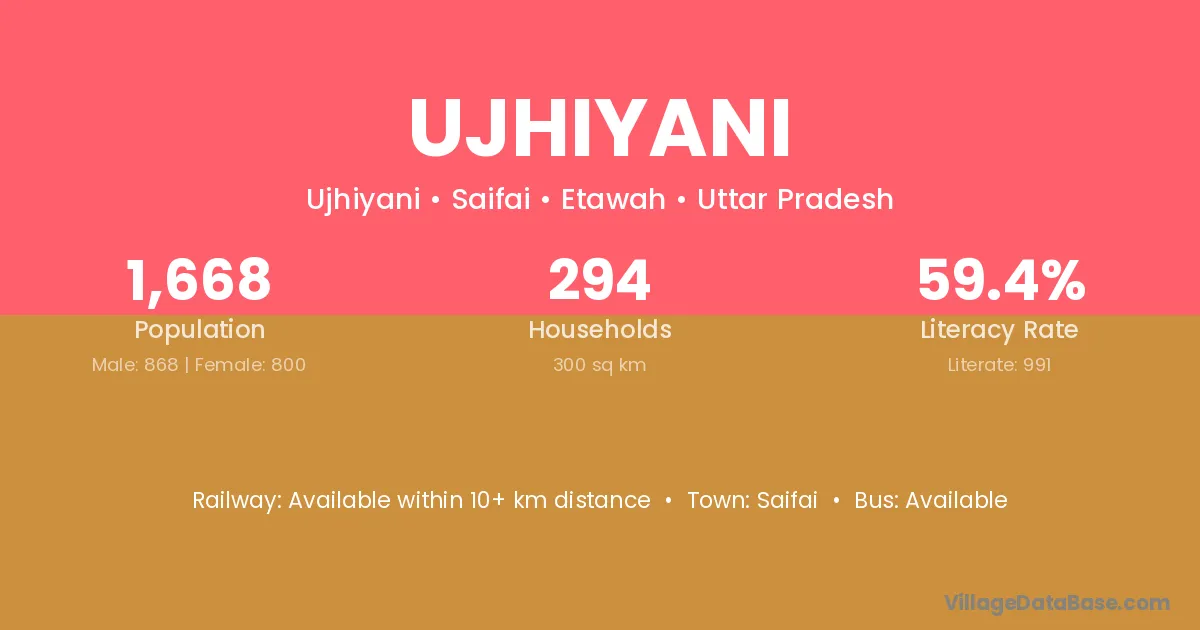 Ujhiyani village has a total population of 1,668 people, of which 868 are males and 800 are females.