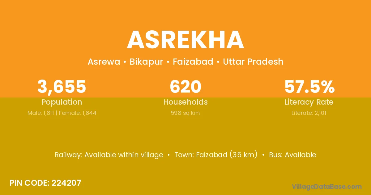 Faizabad (35 km) is the nearest town to Asrekha village for major economic activities and is located approximately 35 km away.