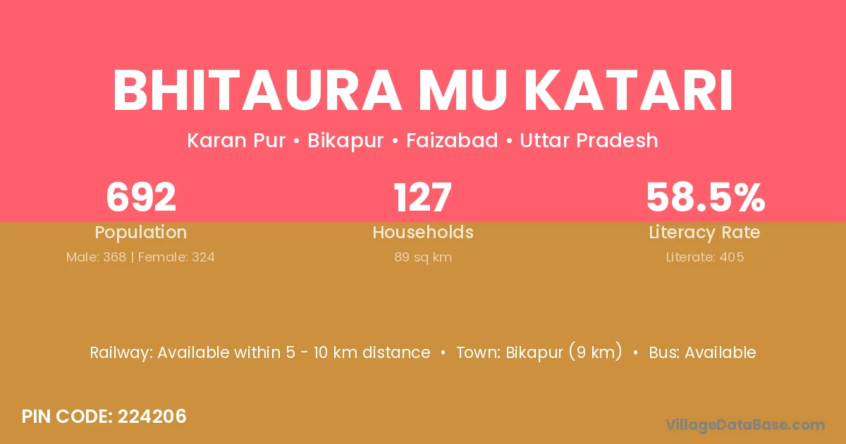 Bhitaura Mu Katari village has a total population of 692 people, of which 368 are males and 324 are females.