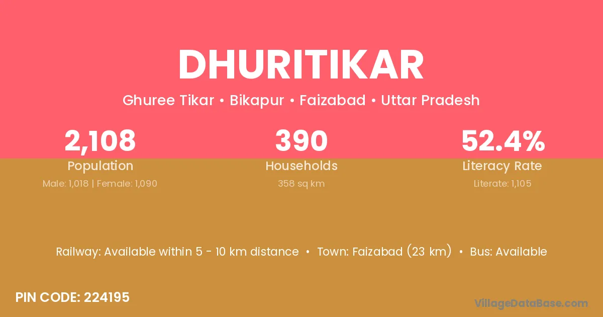 Faizabad (23 km) is the nearest town to Dhuritikar village for major economic activities and is located approximately 23 km away.