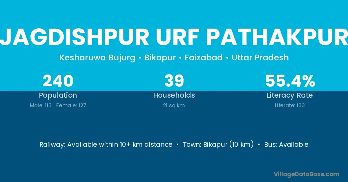 Jagdishpur Urf Pathakpur village has a total population of 240 people, of which 113 are males and 127 are females.