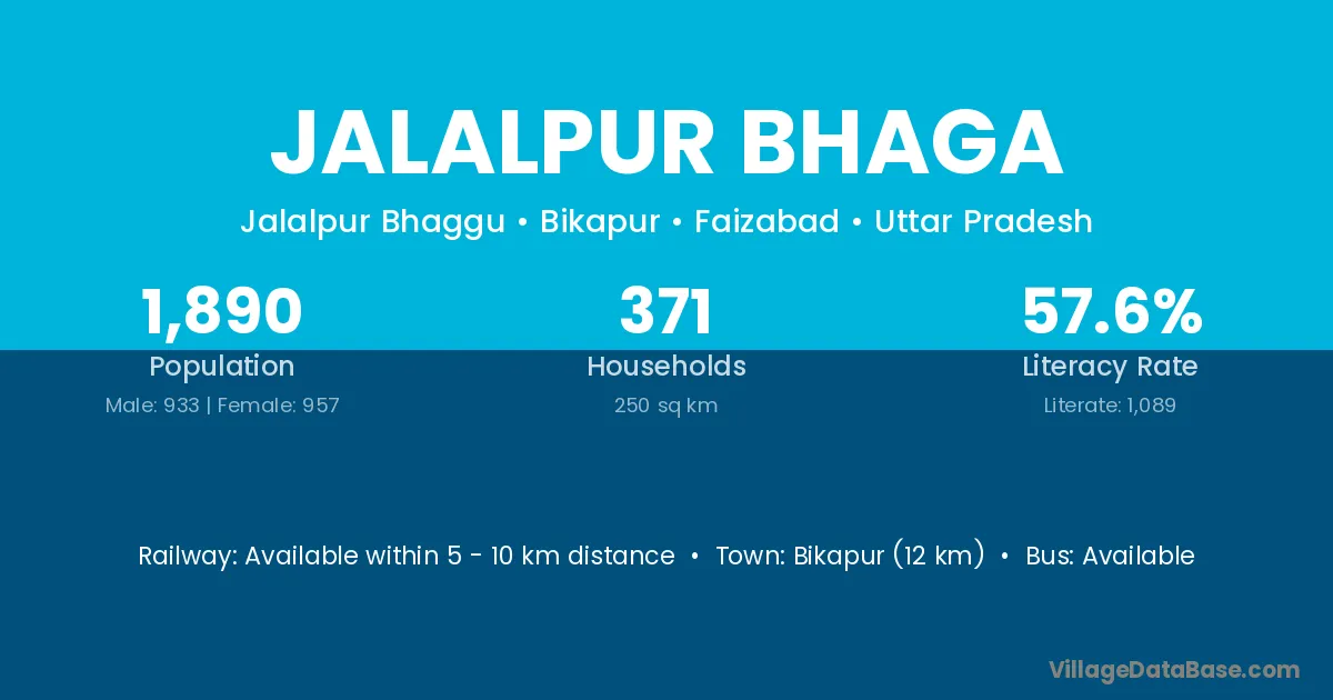 Bikapur (12 km) is the nearest town to Jalalpur Bhaga village for major economic activities and is located approximately 12 km away.