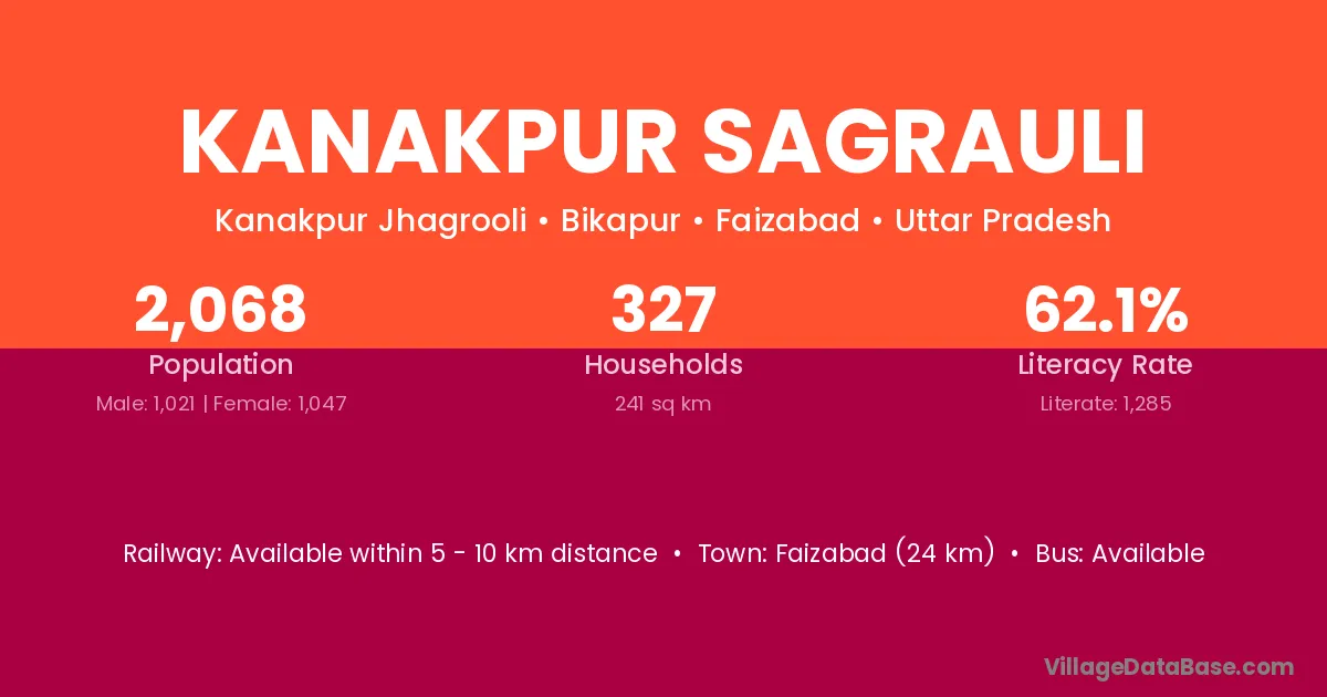 Faizabad (24 km) is the nearest town to Kanakpur Sagrauli village for major economic activities and is located approximately 24 km away.