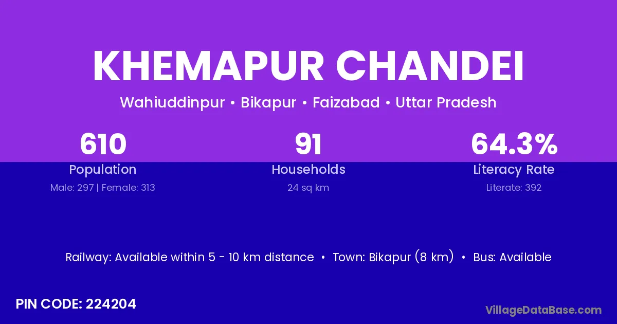 Bikapur (8 km) is the nearest town to Khemapur Chandei village for major economic activities and is located approximately 8 km away.