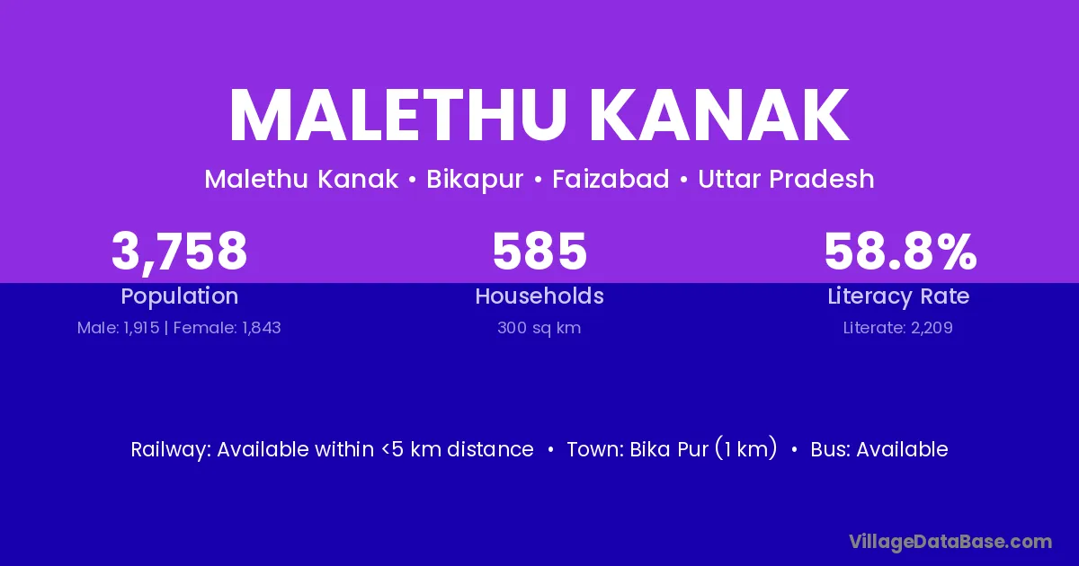Bika Pur (1 km) is the nearest town to Malethu Kanak village for major economic activities and is located approximately 1 km away.
