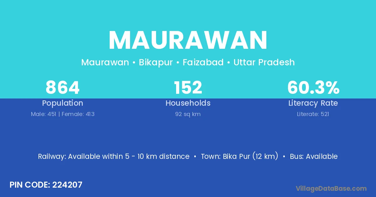 Bika Pur (12 km) is the nearest town to Maurawan village for major economic activities and is located approximately 12 km away.