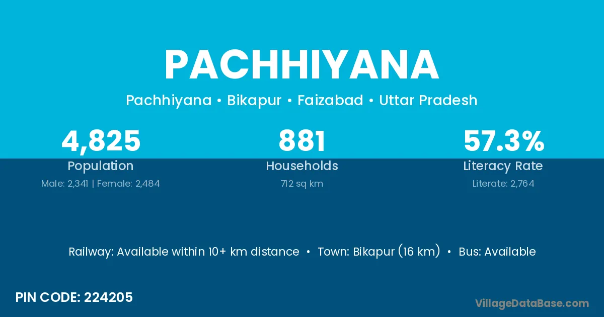 Bikapur (16 km) is the nearest town to Pachhiyana village for major economic activities and is located approximately 16 km away.